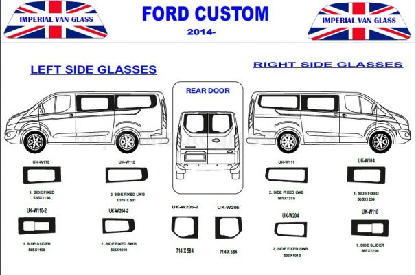 Glass Type | 1. SIDE FIXED GLASS LEFT, 1. SIDE FIXED GLASS RIGHT, 1. SIDE SLIDER GLASS LEFT, 1. SIDE SLIDER GLASS RIGHT, LWB 2. SIDE FIXED GLASS LEFT, LWB 2. SIDE FIXED GLASS RIGHT, SWB 2. SIDE FIXED GLASS LEFT, SWB 2. SIDE FIXED GLASS RIGHT, TWIN BACK DOOR (NO HOLES/NO HEATING) |